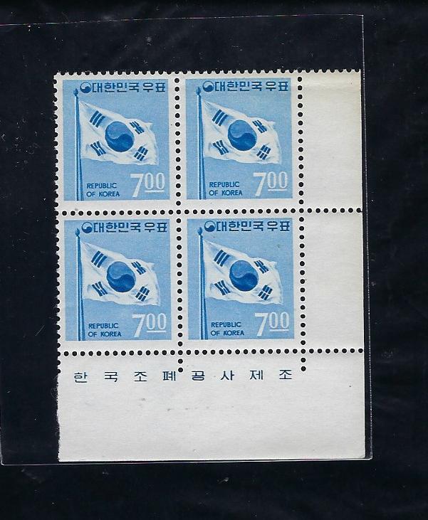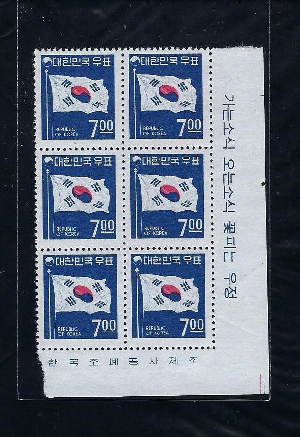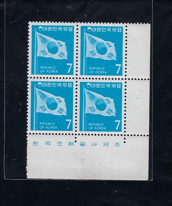 제2차 국산백지 보통 7원 태극기 명판田형(표어포함)
