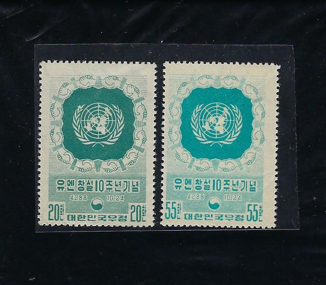 1955년 유엔창설 10년 우표 2완