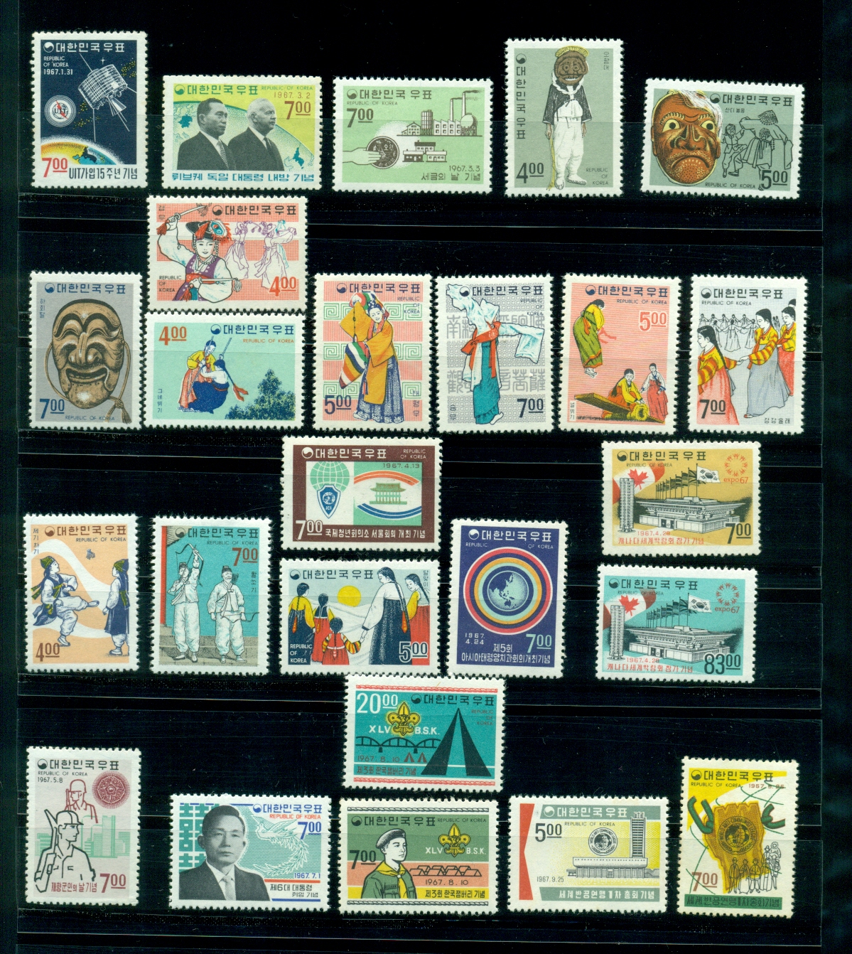 1967년 발행 기념 연하 우표 42완