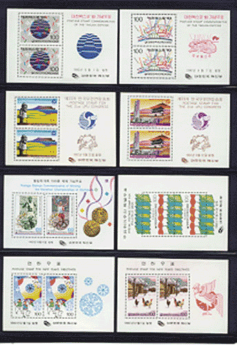 1992년발행 기념 연하 소형시트 8종완