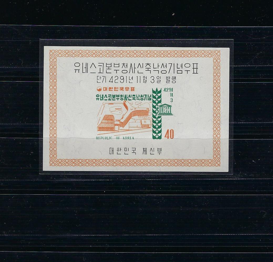 1958년 발행 유네스코 본부 청사 신축 낙성 시트