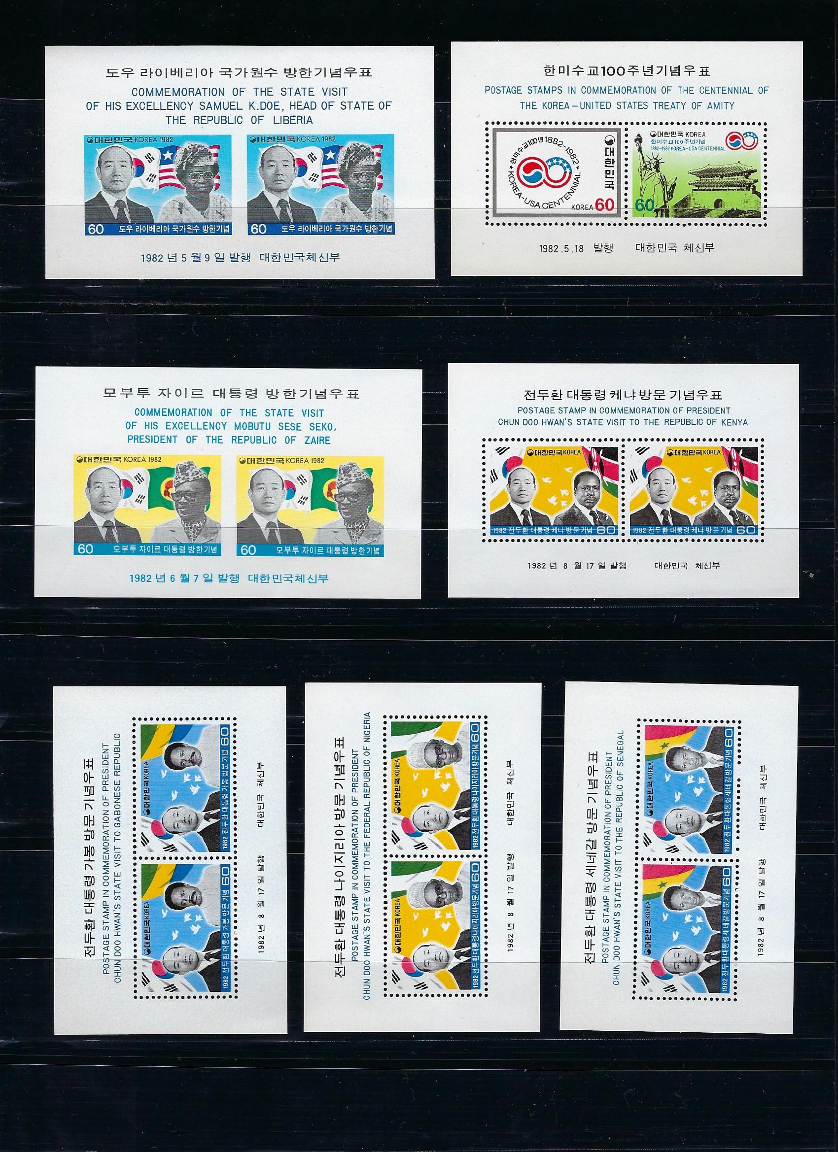 1982년 발행 기념 연하 소형시트 14 종완