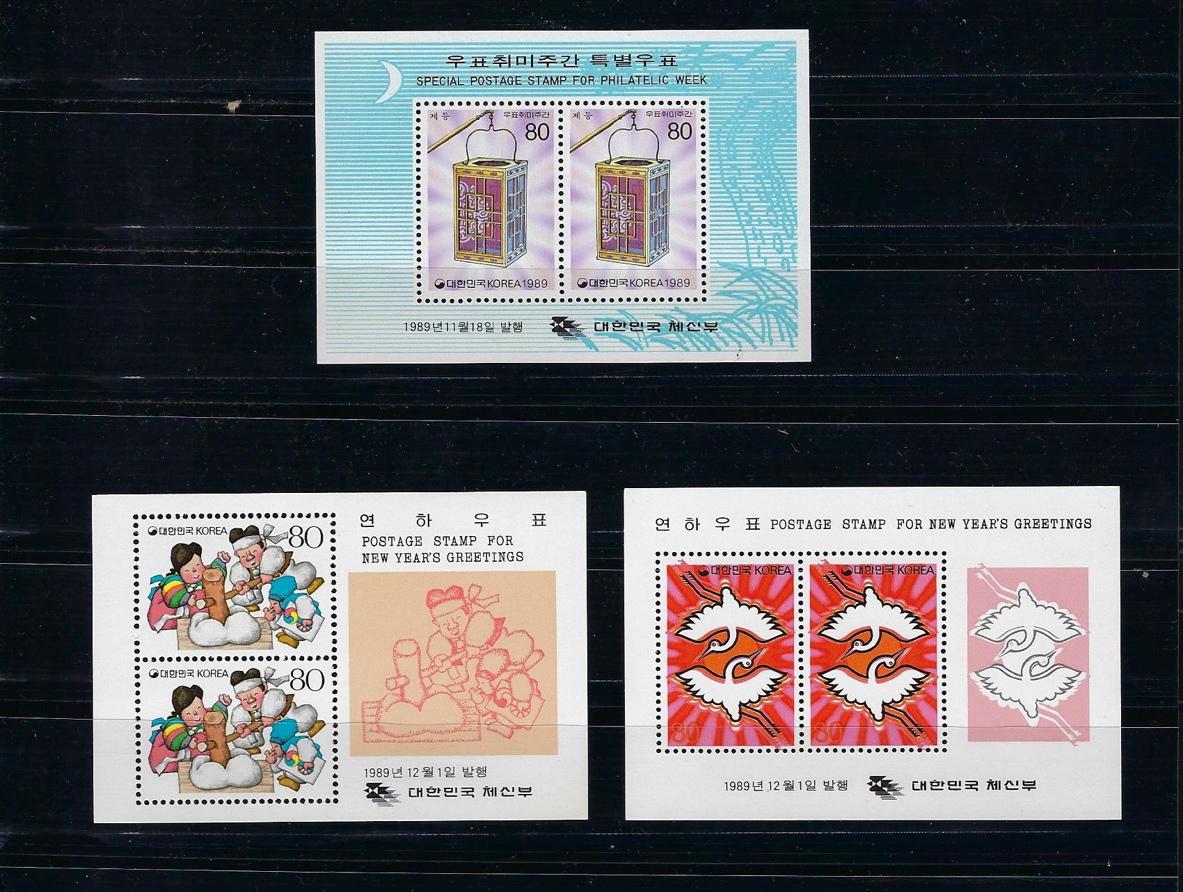 1989년 발행 기념 연하 소형시트 3종완