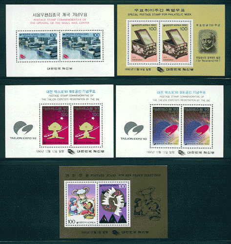1990년발행 기념 소형시트 5종완