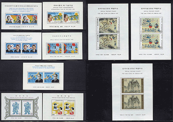 1979년 발행 기념 연하 소형시트 10종완