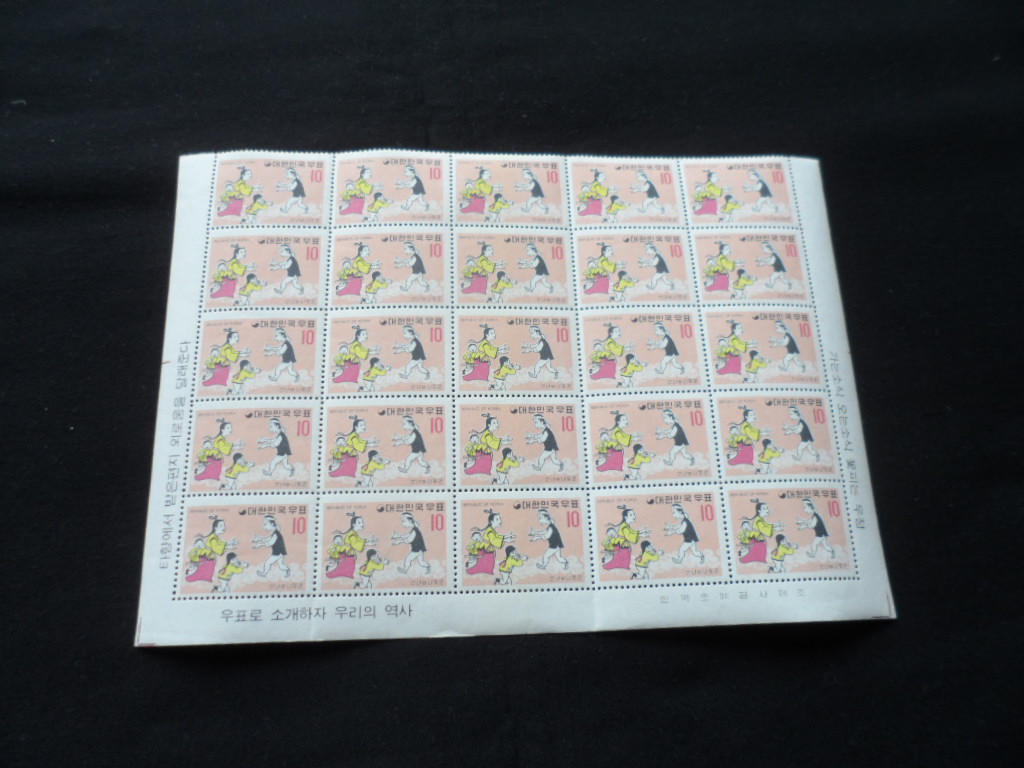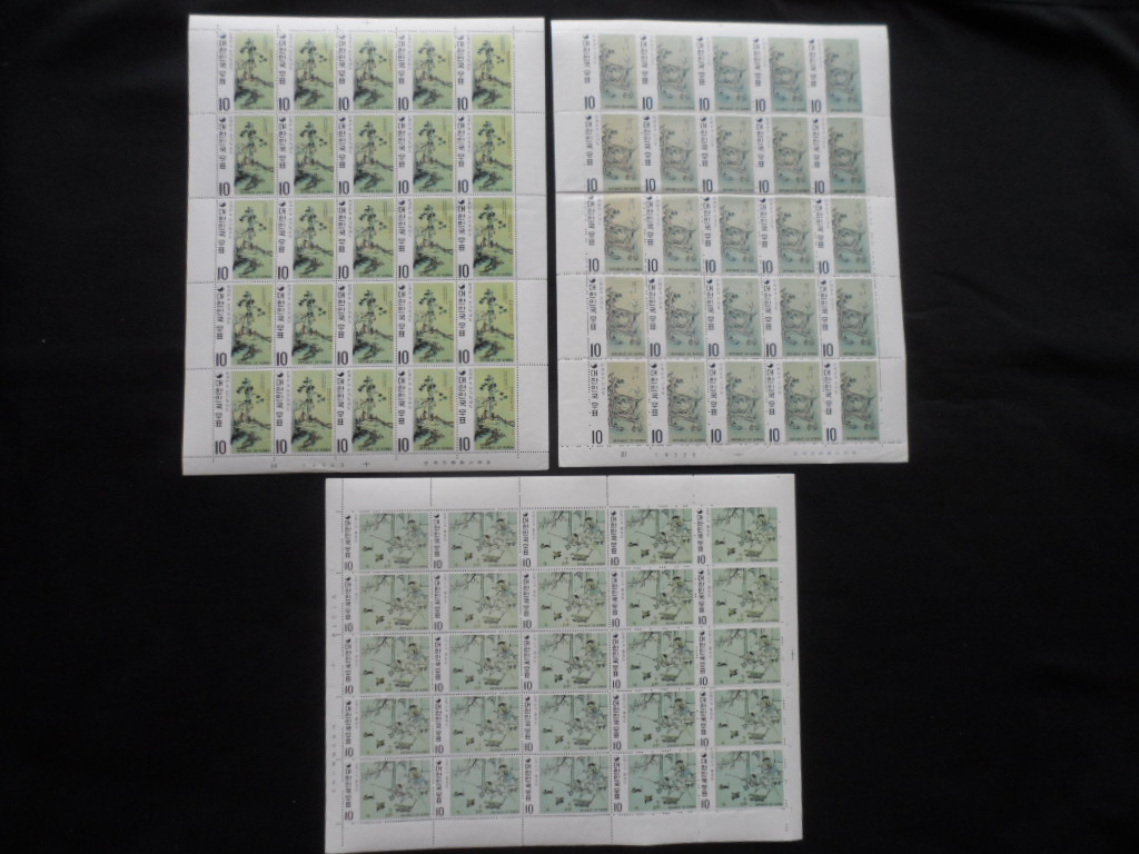 70년 명화시리즈 제5집 우표 전지 3완
