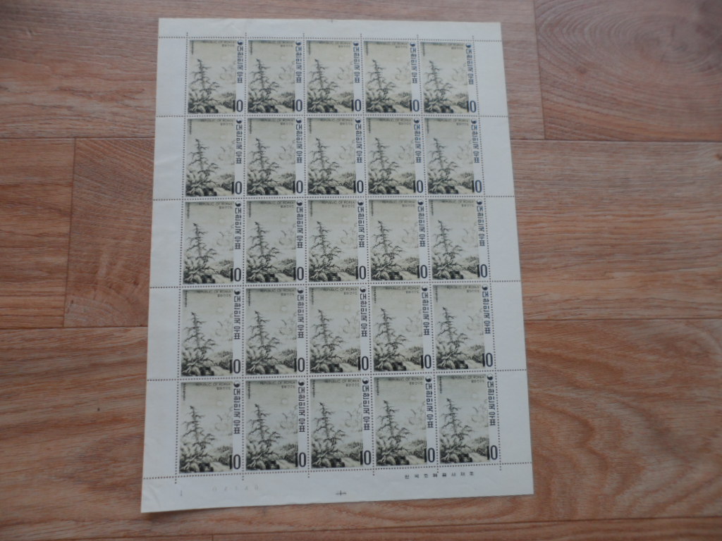 70년 명화시리즈 제1집 월야 산수도 우표 전지