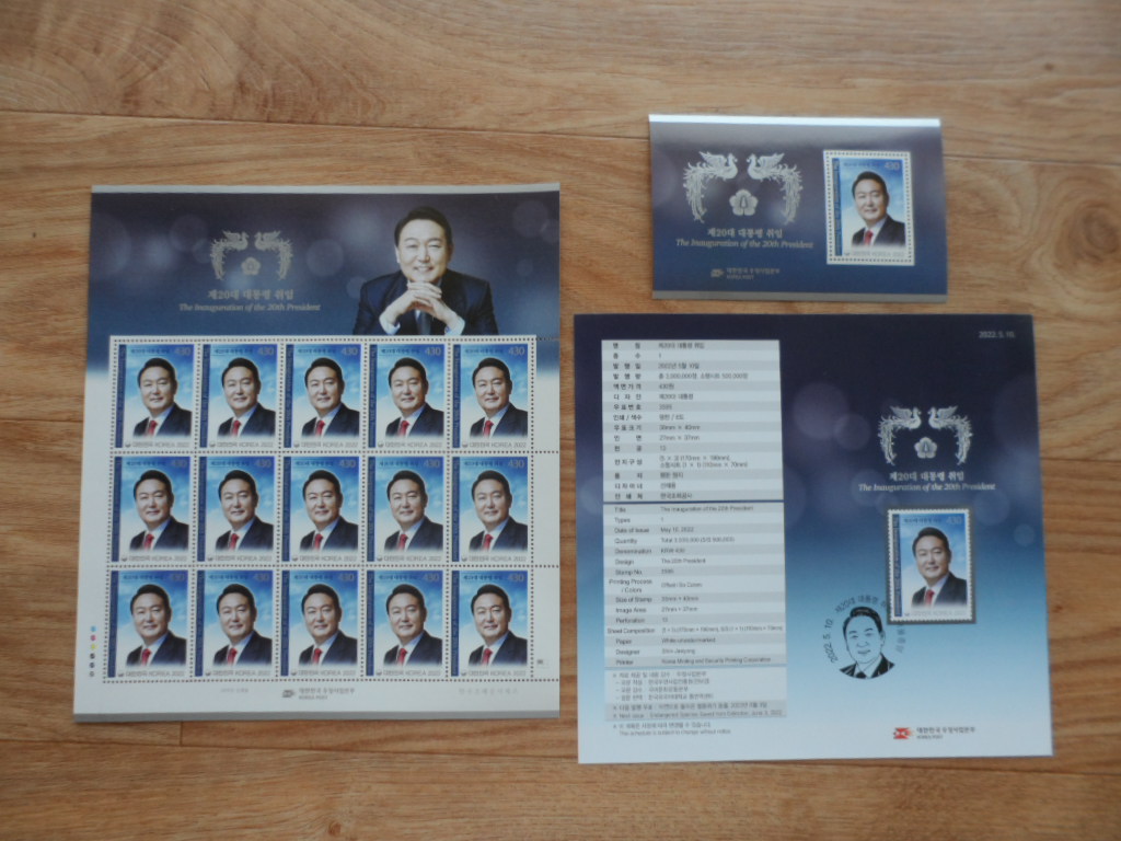 제20대 윤석열 대통령 취임 우표 전지 시트 안내카드 3종