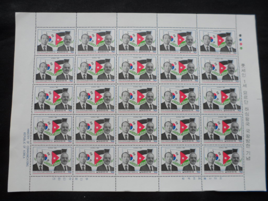 83년 훗세인 1세 요르단 하심왕국 국왕 방한 우표 전지