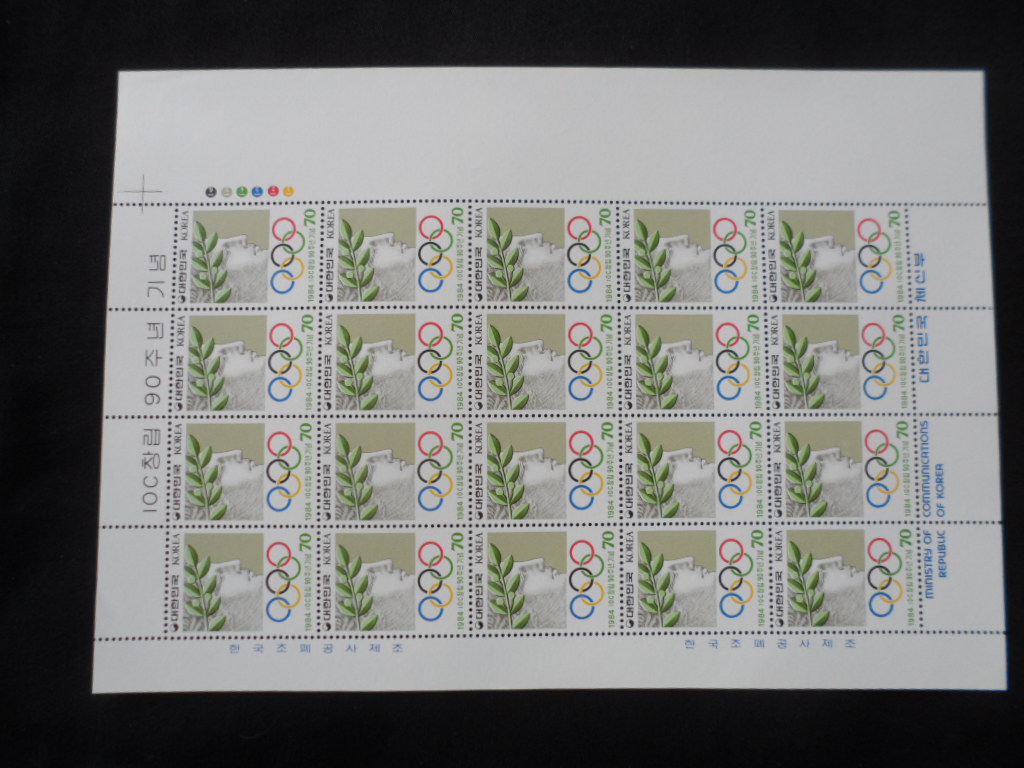 84년 IOC 창립 90주년 우표 전지