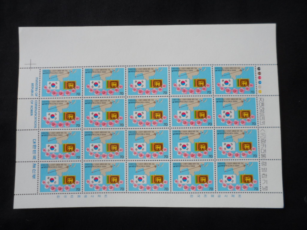 84년 자예와르데네 스리랑카 대통령 방한 우표 전지