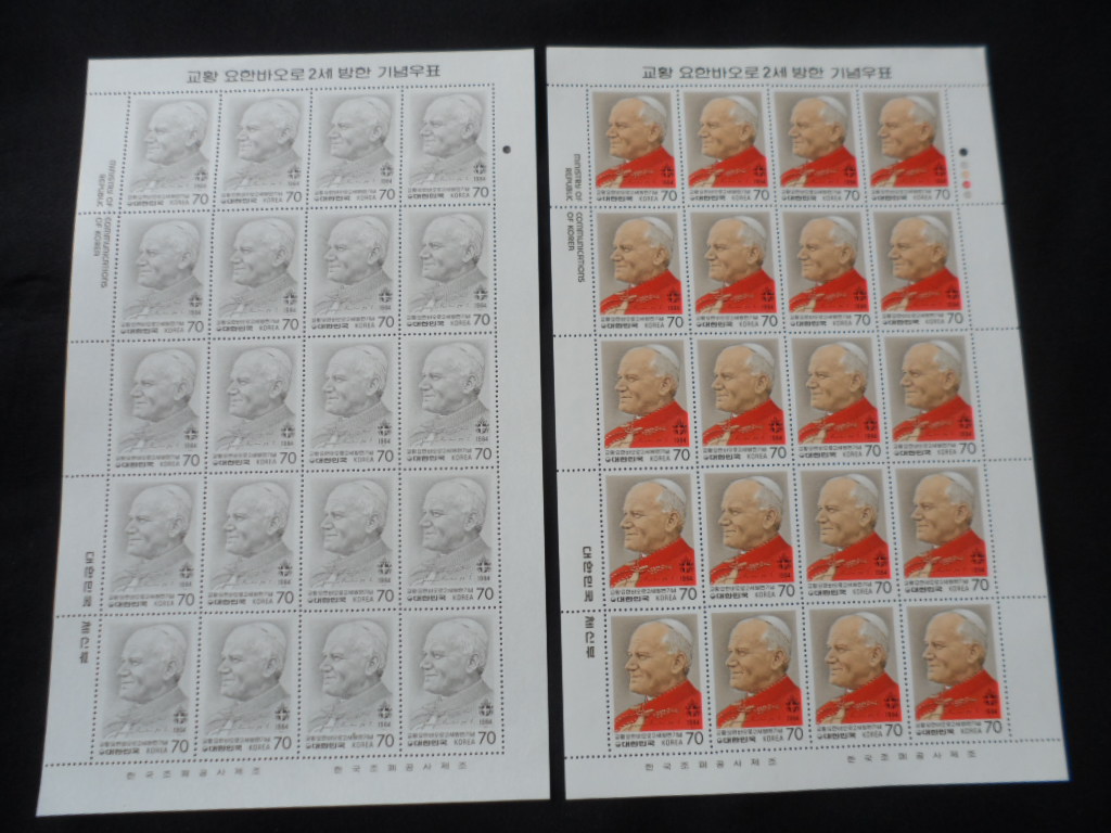 84년 교황 요한 바오로 2세 방한 우표 전지 2완