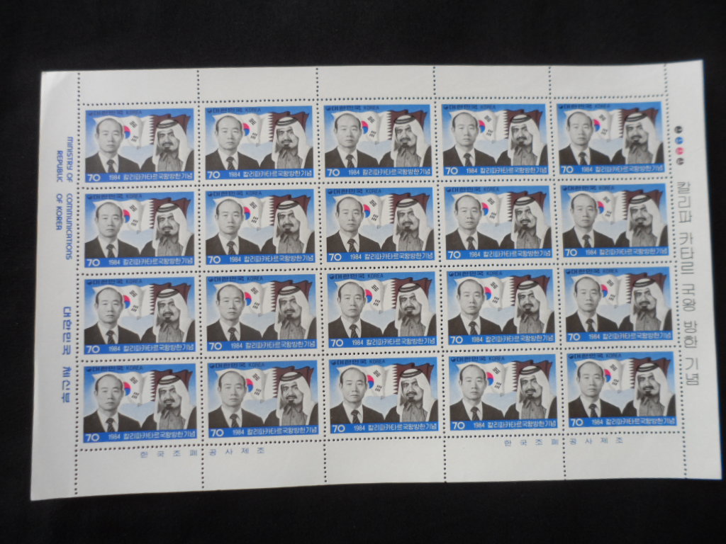 84년 칼리파 카타르 국왕 방한 우표 전지