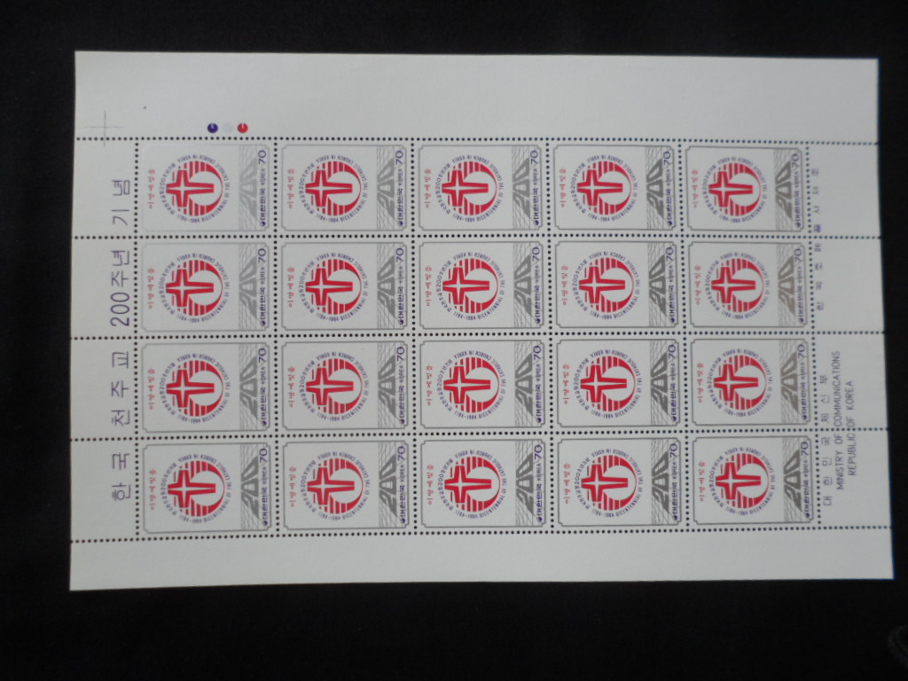 84년 한국천주교 200주년 우표 전지