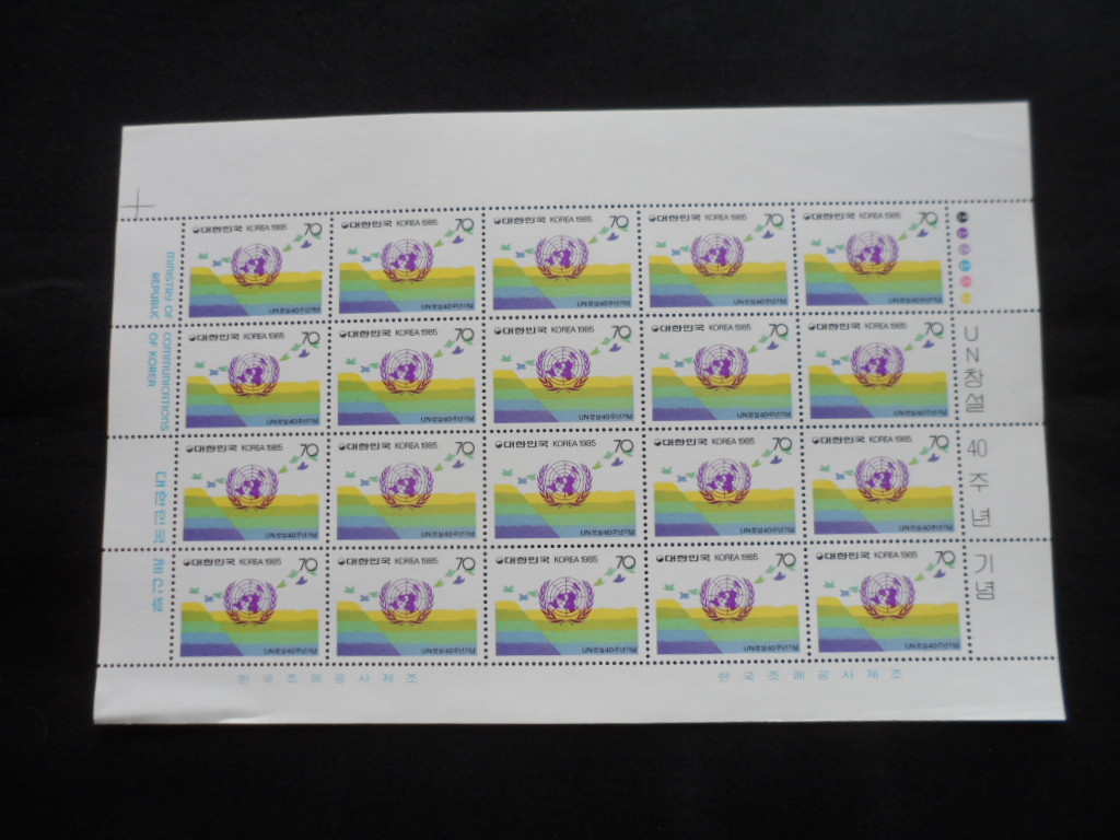 85년 한일 국교 정상화 20주년 우표 전지 2완