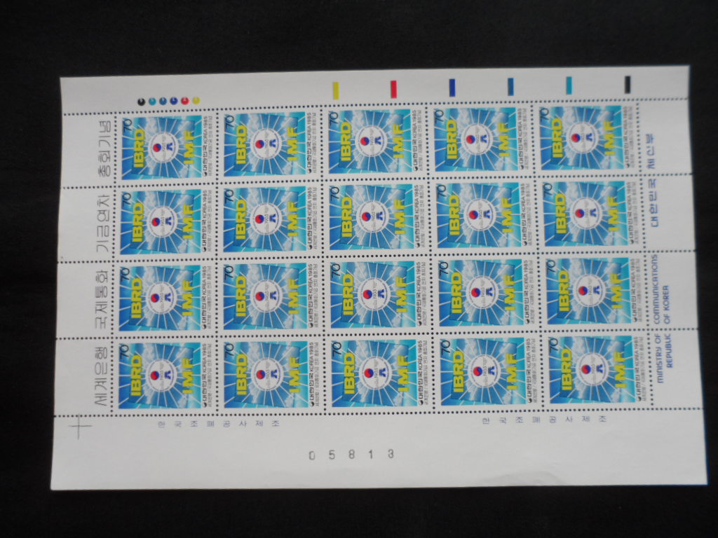 85년 세계은행/국제통화기금 연차총회 우표 전지