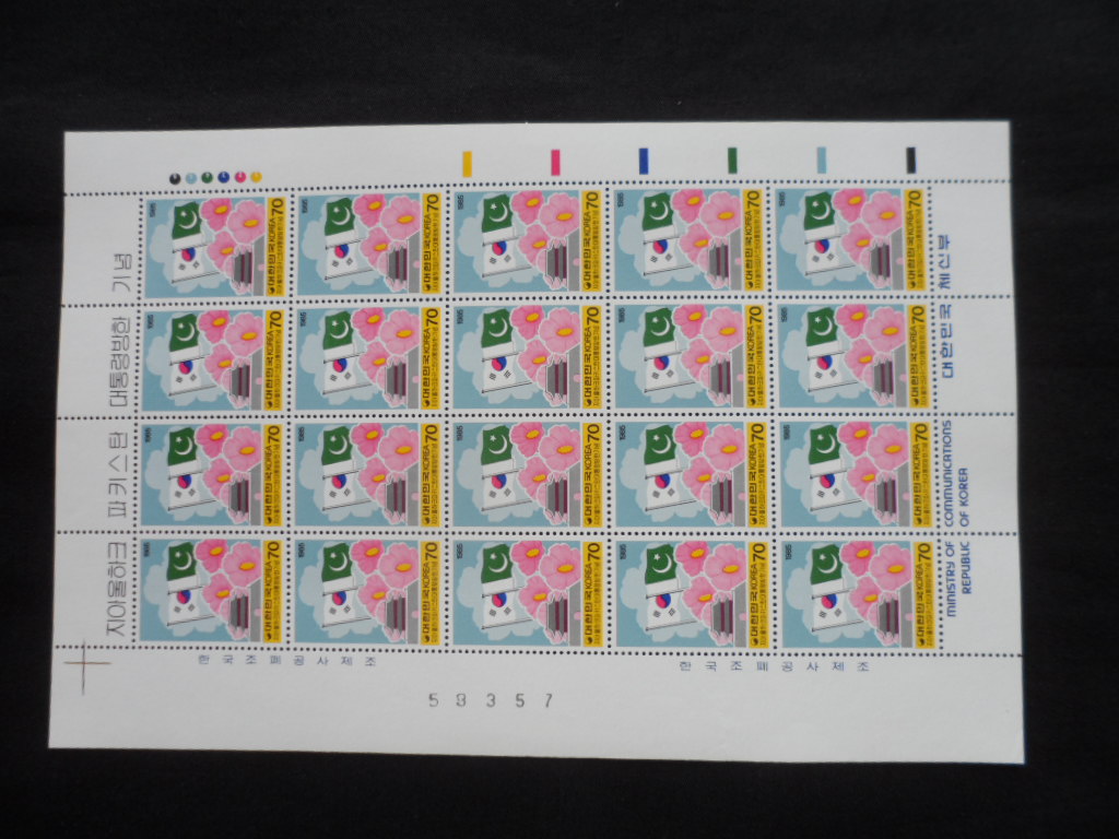 지하 울 하크 파키스탄 대통령 방한 우표 전지