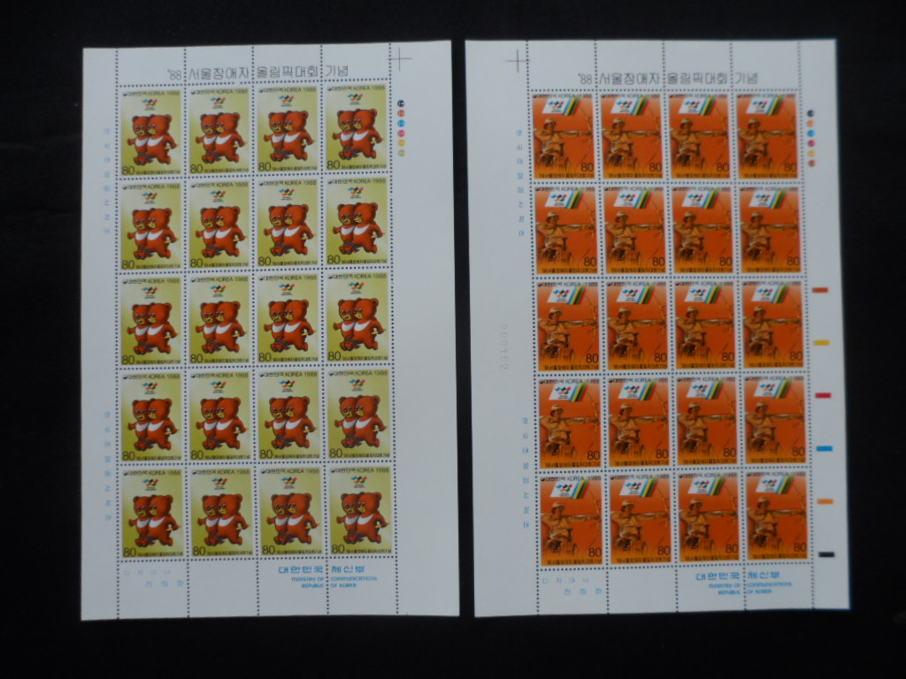 88년 서울 장애자 올림픽 대회 우표 전지 2종완