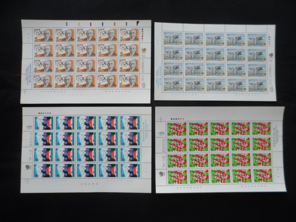 88년 제24회 올림픽대회 개최 우표 전지 4종완