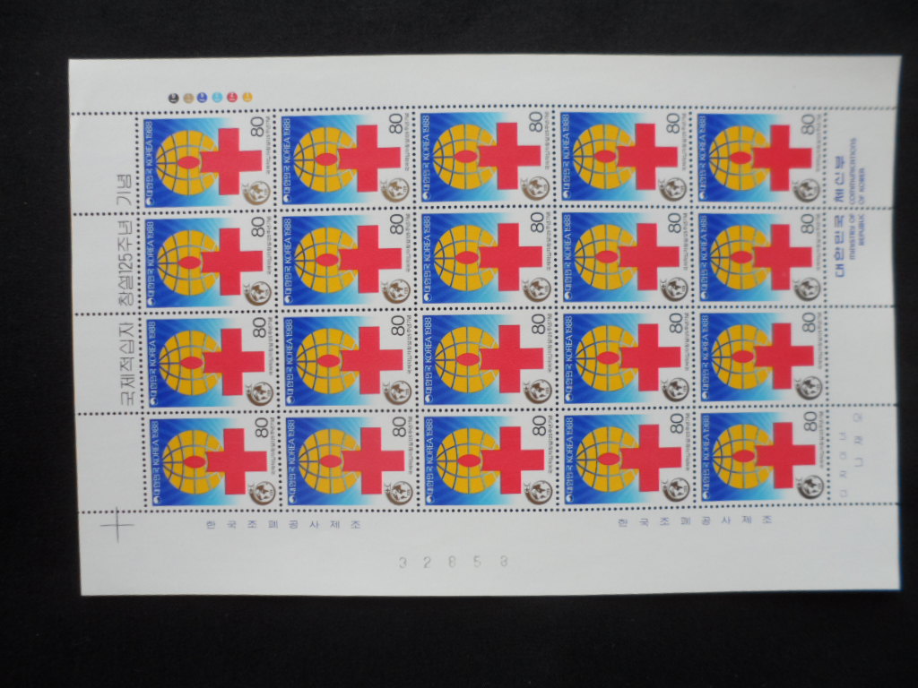 88년 국제적십자 창설 125주년 우표 전지