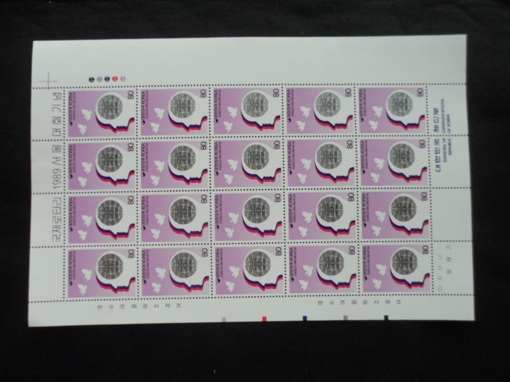 89년 서울올림픽 기념축제 및 세계한민족 체육대회 우표 전지