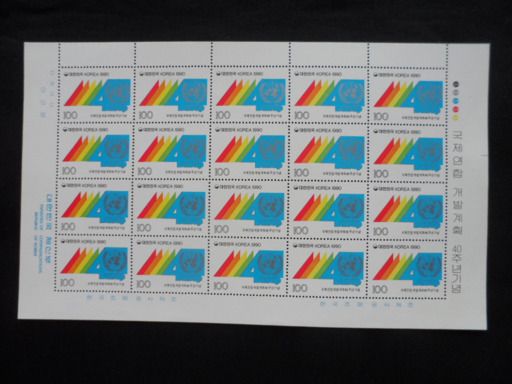 90년 국제연합 개발 계획 40주년 우표 전지
