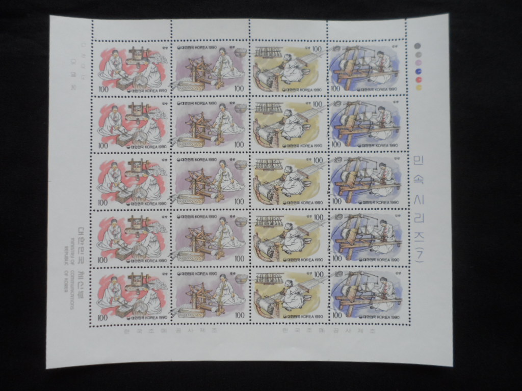90년 민속시리즈 (제7집) 길삼 우표 전지