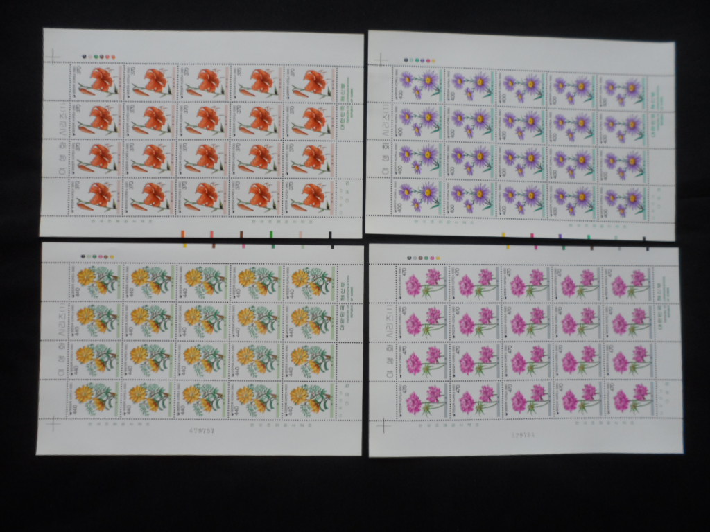 90년 야생화시리즈 (제1집) 우표 전지 4완
