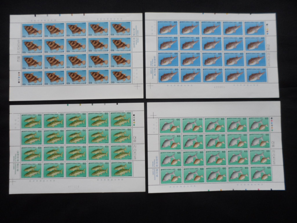 90년 어류시리즈 (제5집) 우표 전지 4완