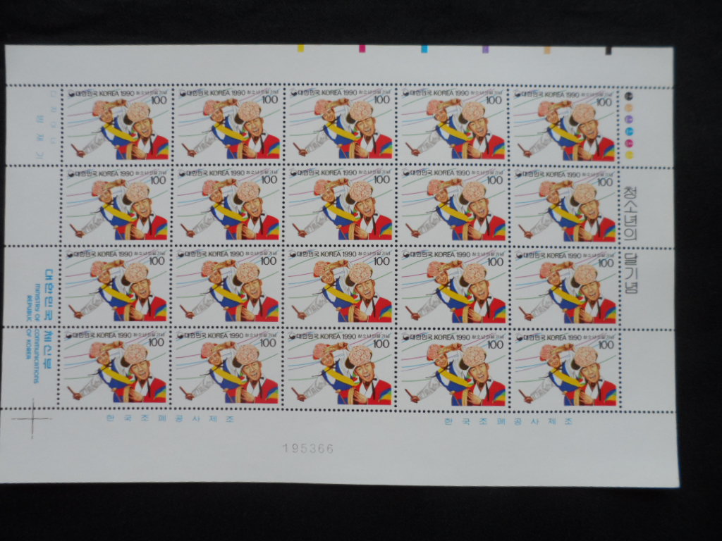 90년 청소년의 달 우표 전지