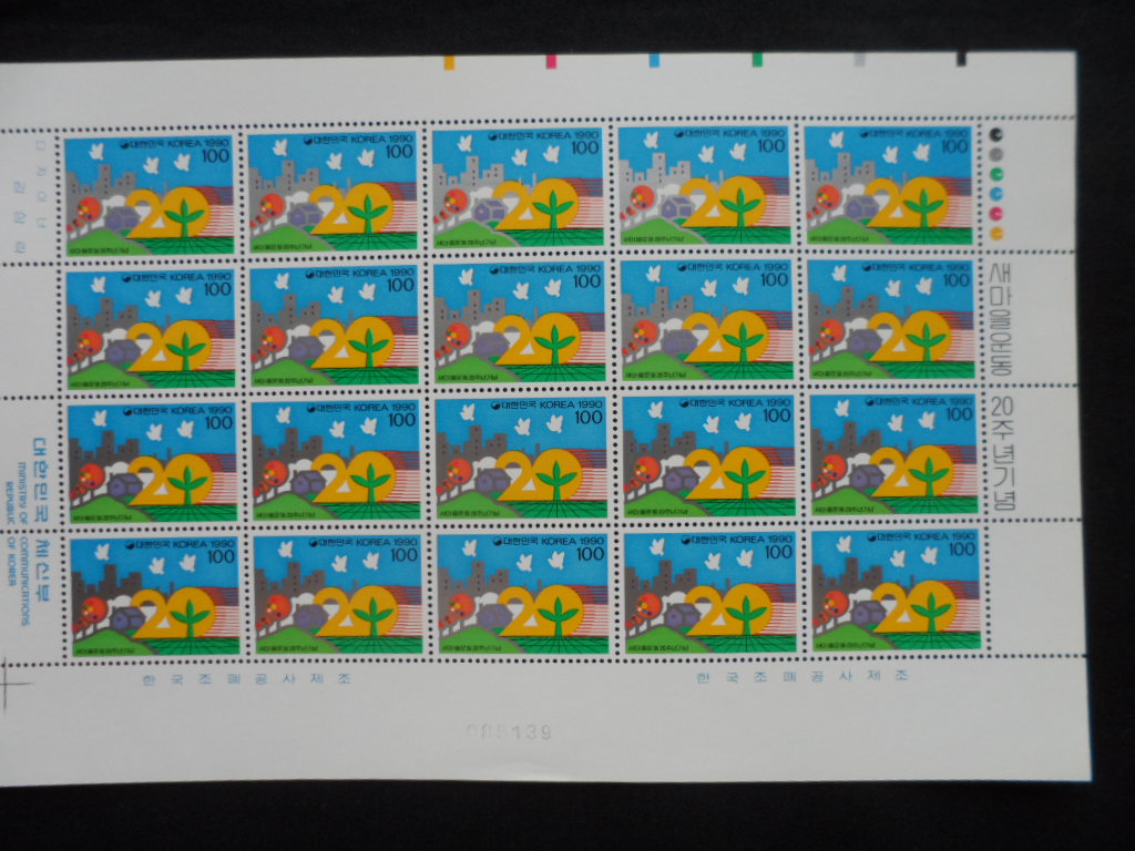 90년 새마을 운동 20주년 우표 전지