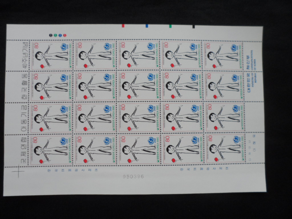 90년 국제연합 아동기금 한국활동 40주년 우표 전지