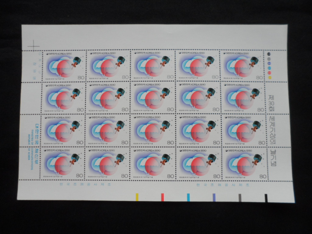 90년 30회 세계기상의 날 우표 전지