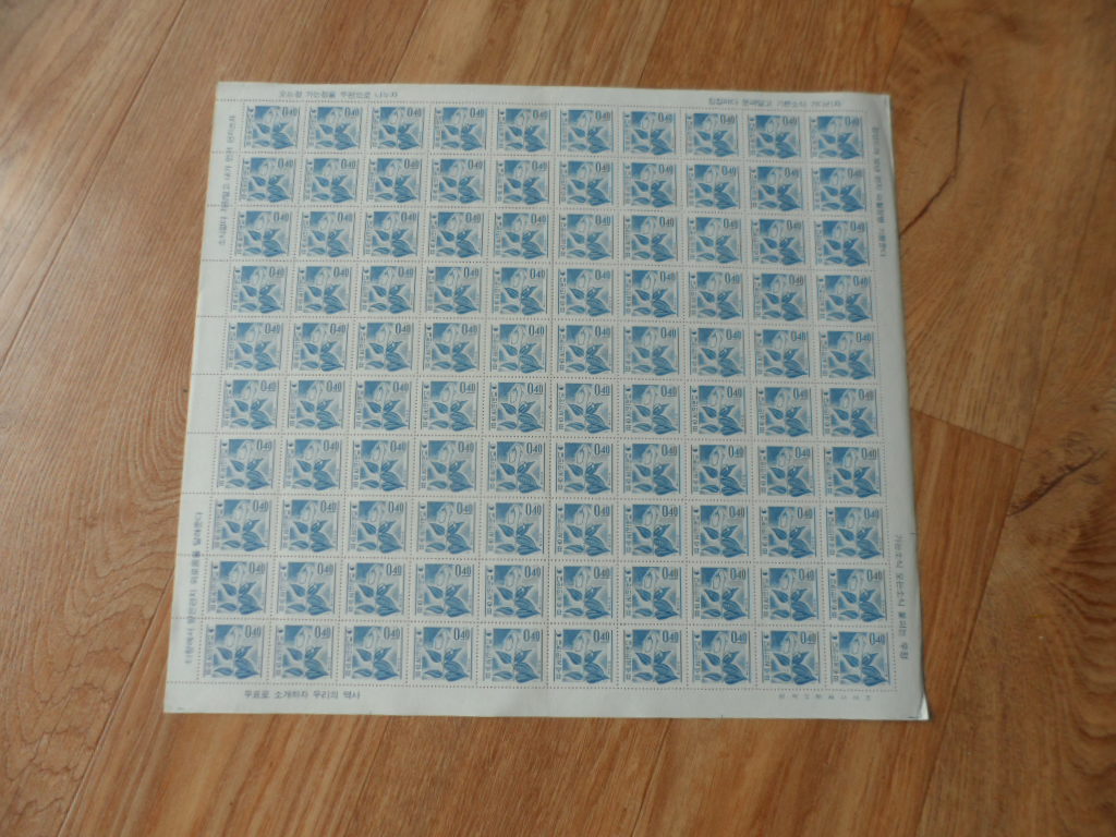 1차 국산 백지 보통 0.40원 금강초롱 우표 전지