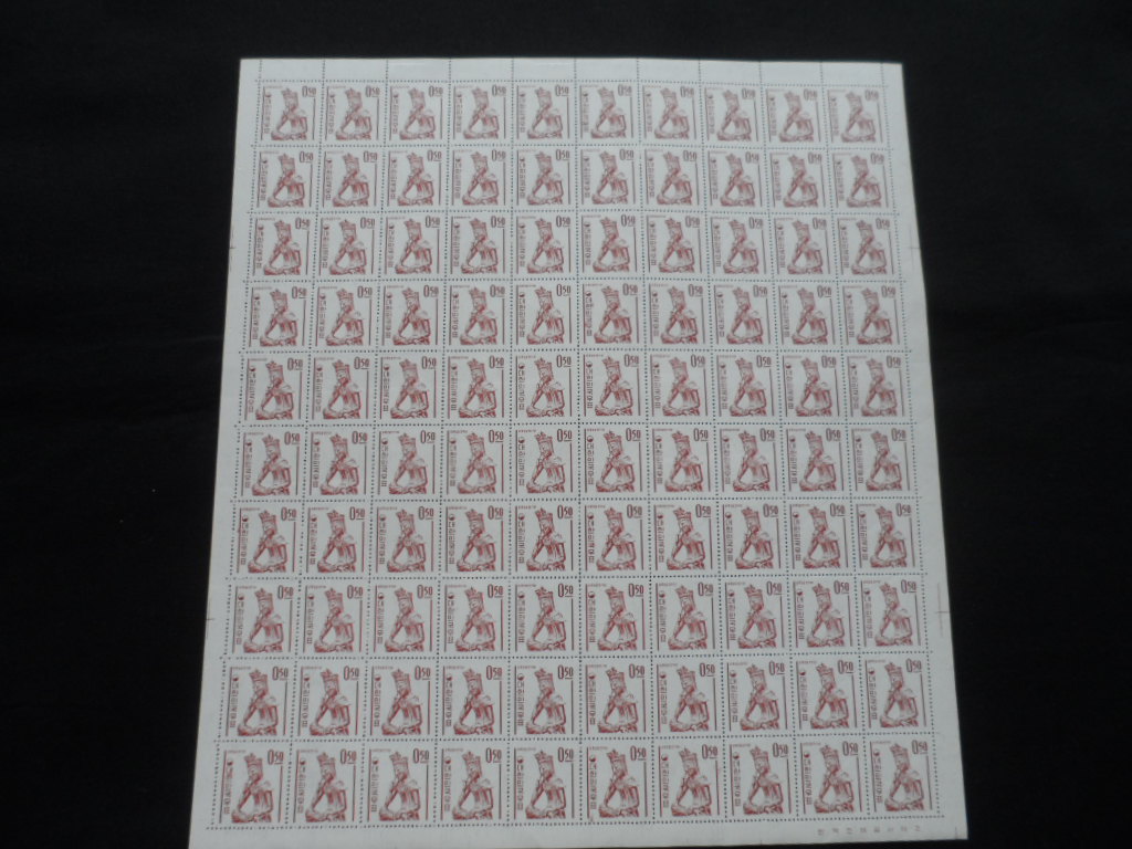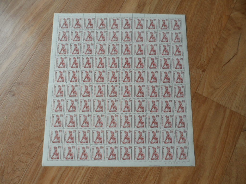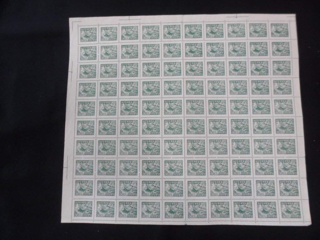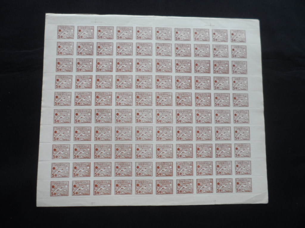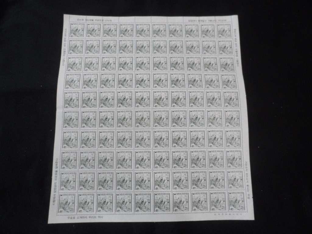56년 엷은 발살무늬 용지 보통 1환 식목 우표 전지