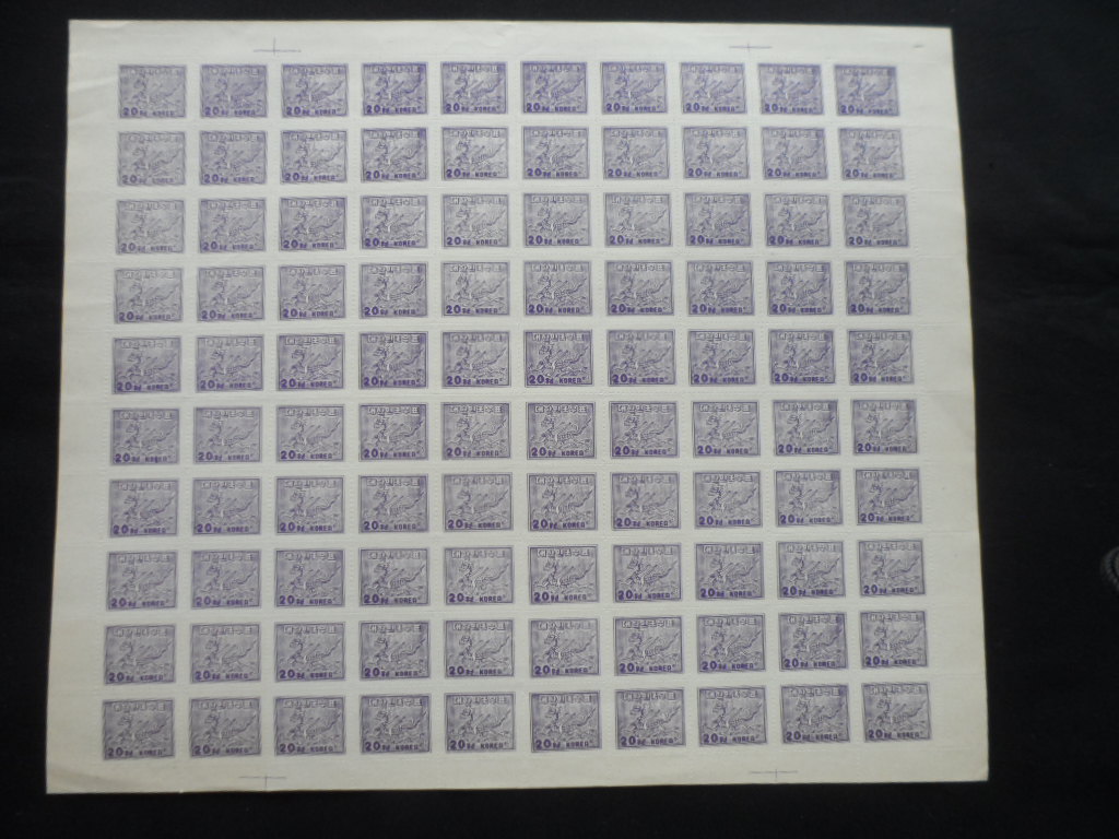 51년 동양정판사 백지 천공 20원 백호 우표 전지