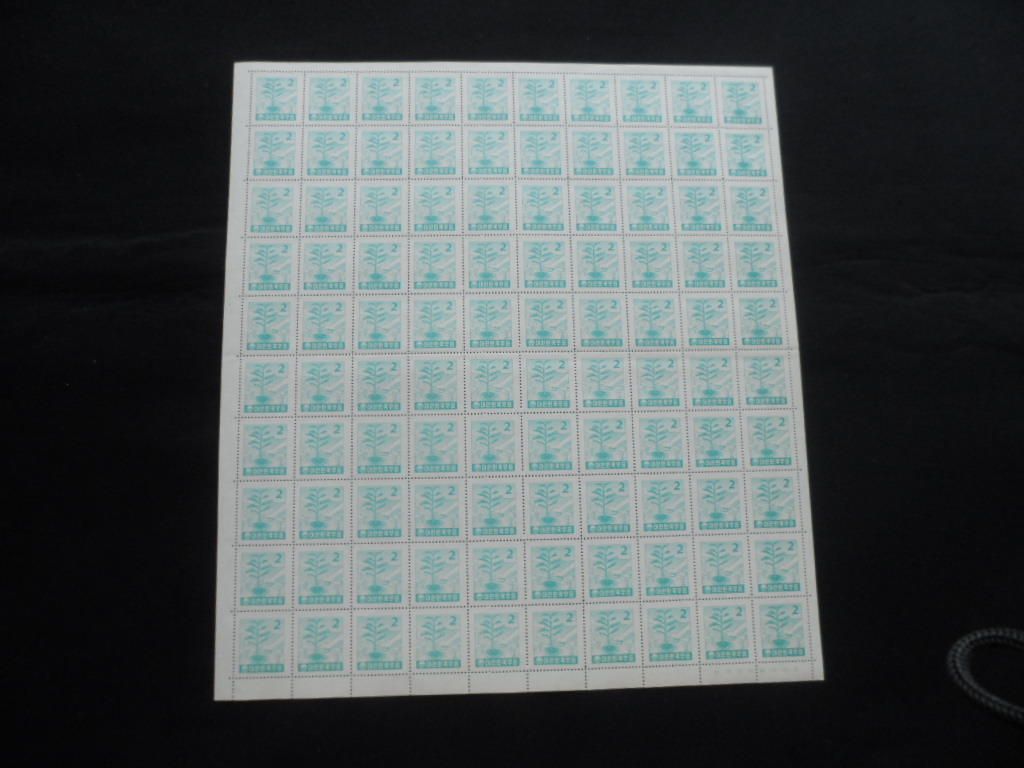 우정마크투문 용지 보통 2환 식목 우표 전지