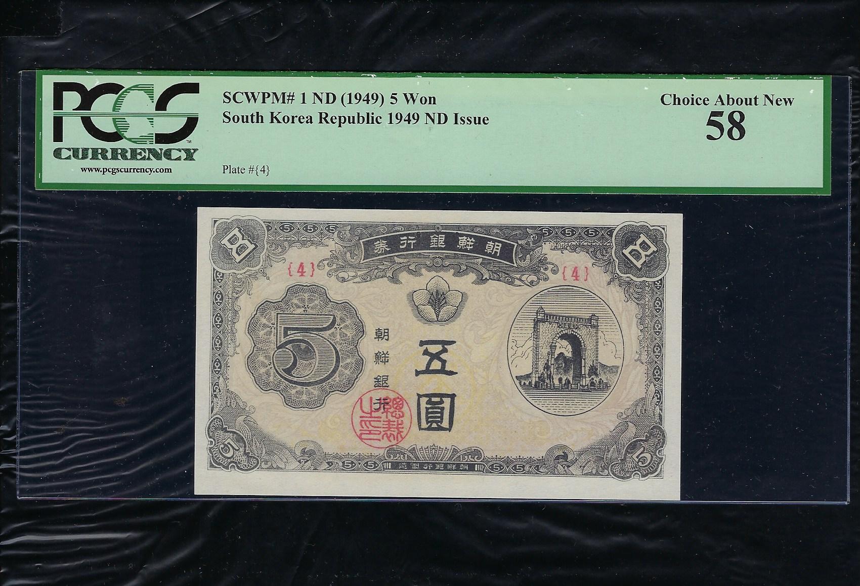 조선은행 신 5 원 독립문 제 4 판 PCGS 58