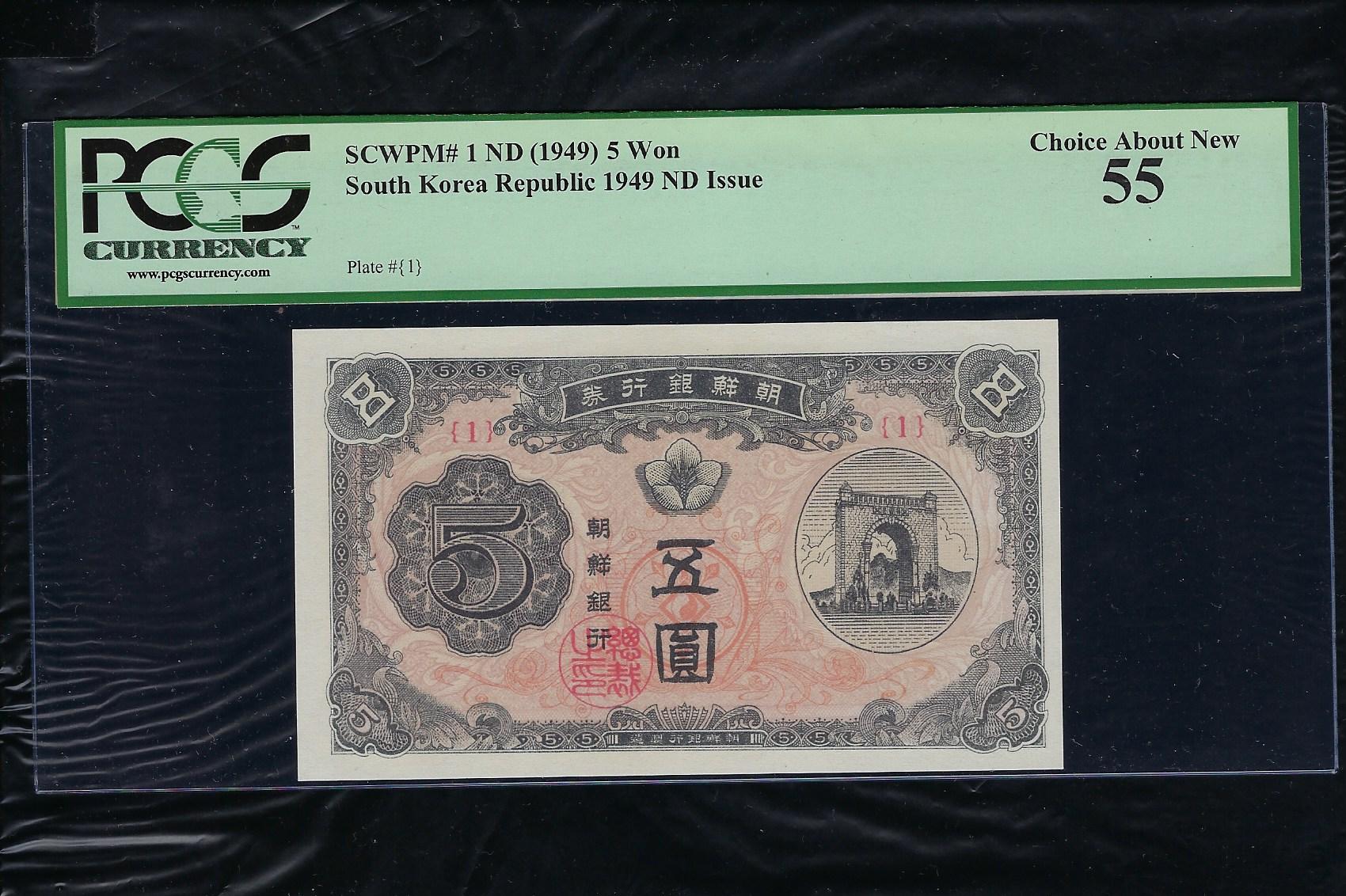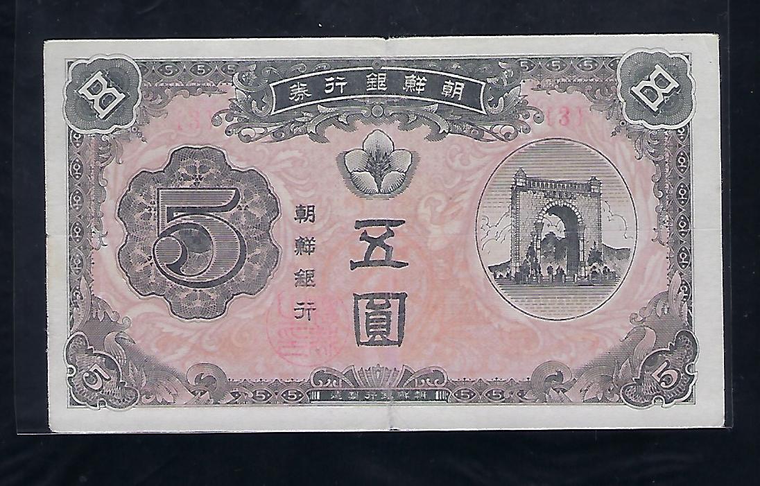 조선은행 신 5 원 초판 1번 독립문 PCGS 55