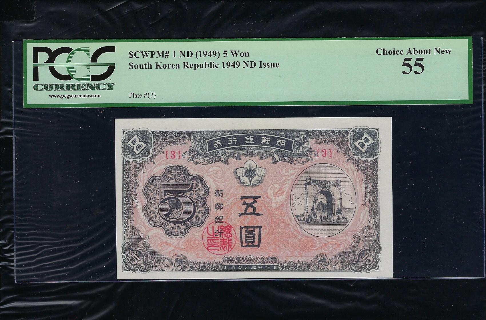 조선은행 신 5 원 제3판 독립문 PCGS 55