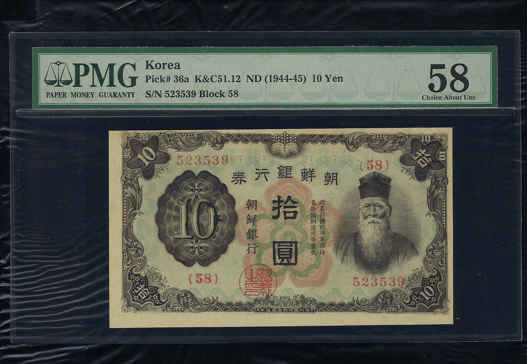 조선은행 갑 10원권 유번호권 PMG 58