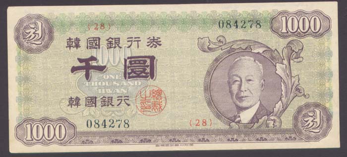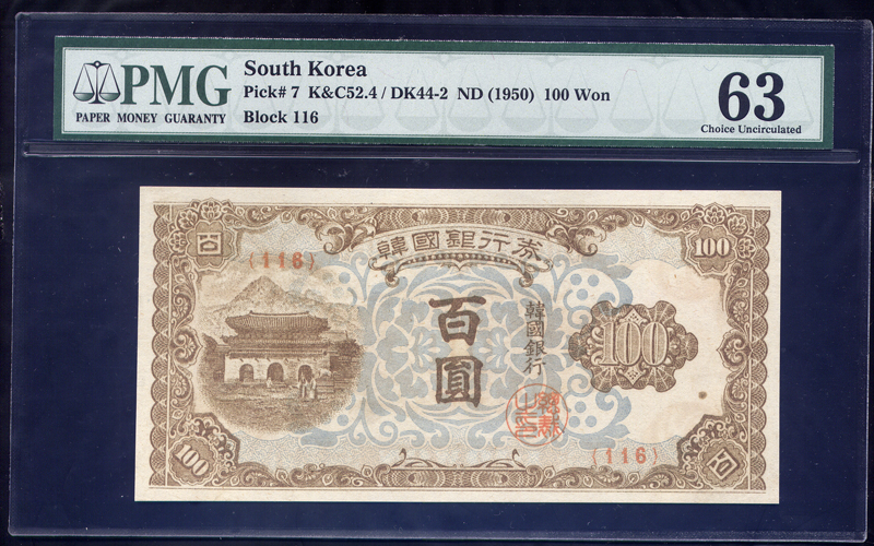 한국은행 신 100 환권 4287년 NNGC MS 64 UNC