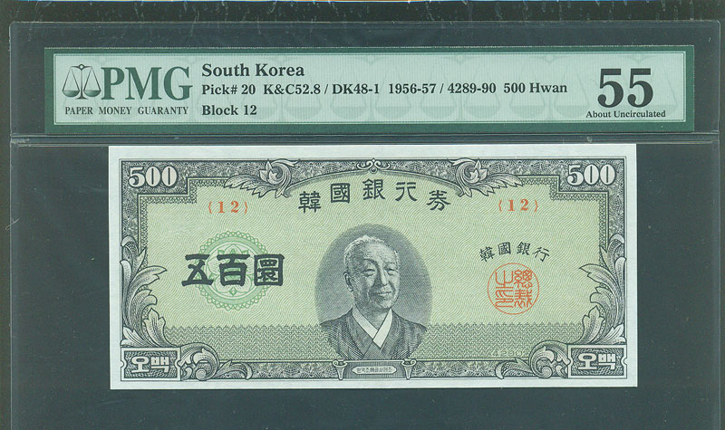 한국은행 500 환권 중앙이박 4290년 PMG 55