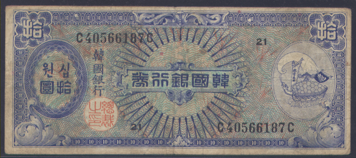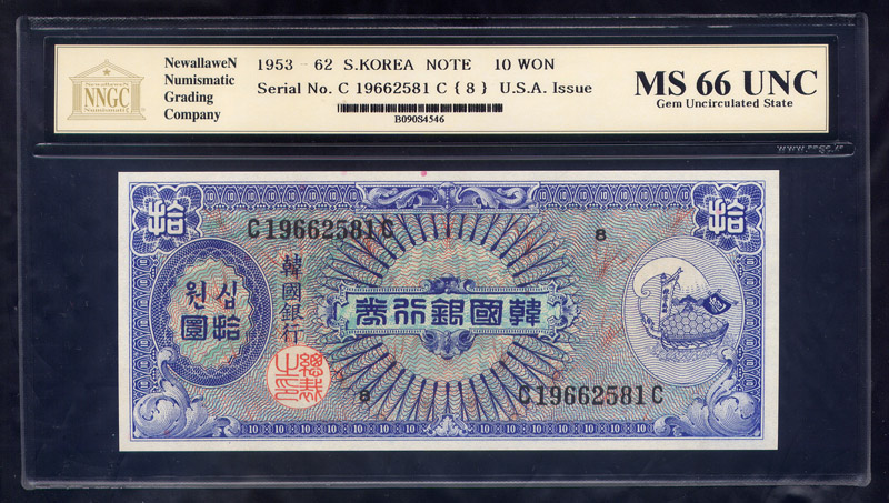 한국은행 10 환권 거북선 NNGC MS 66 UNC