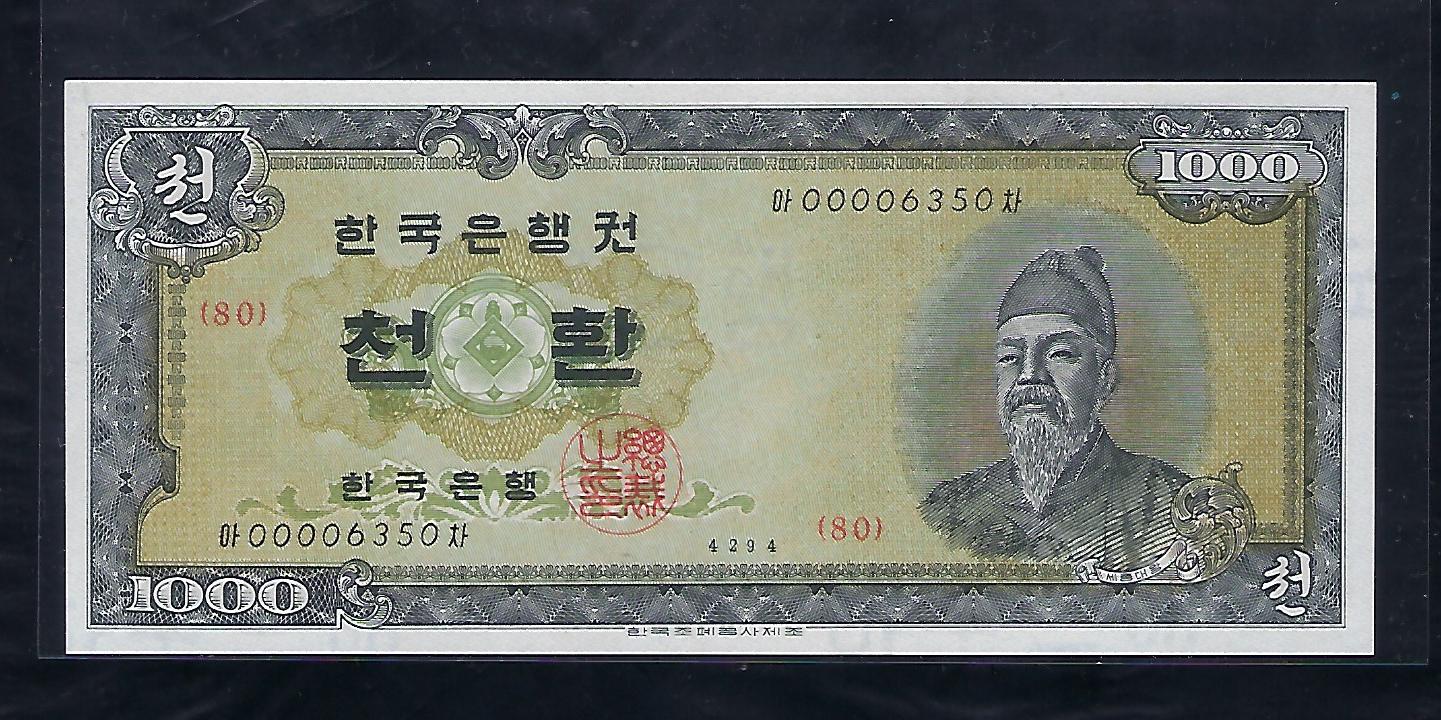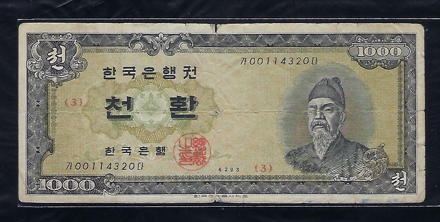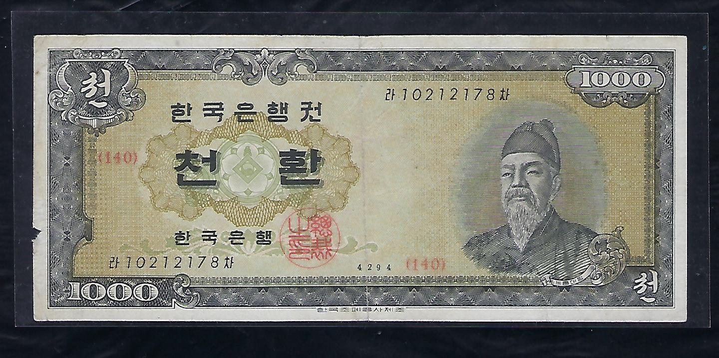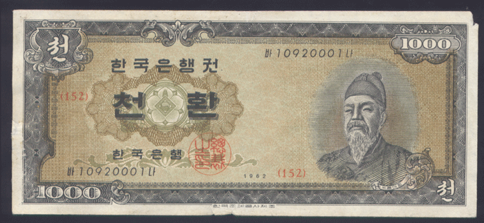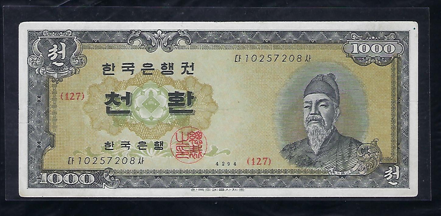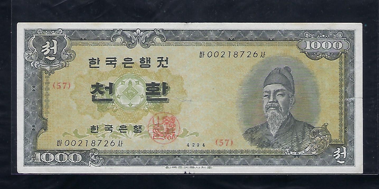 한국은행 개 1000환권 세종
