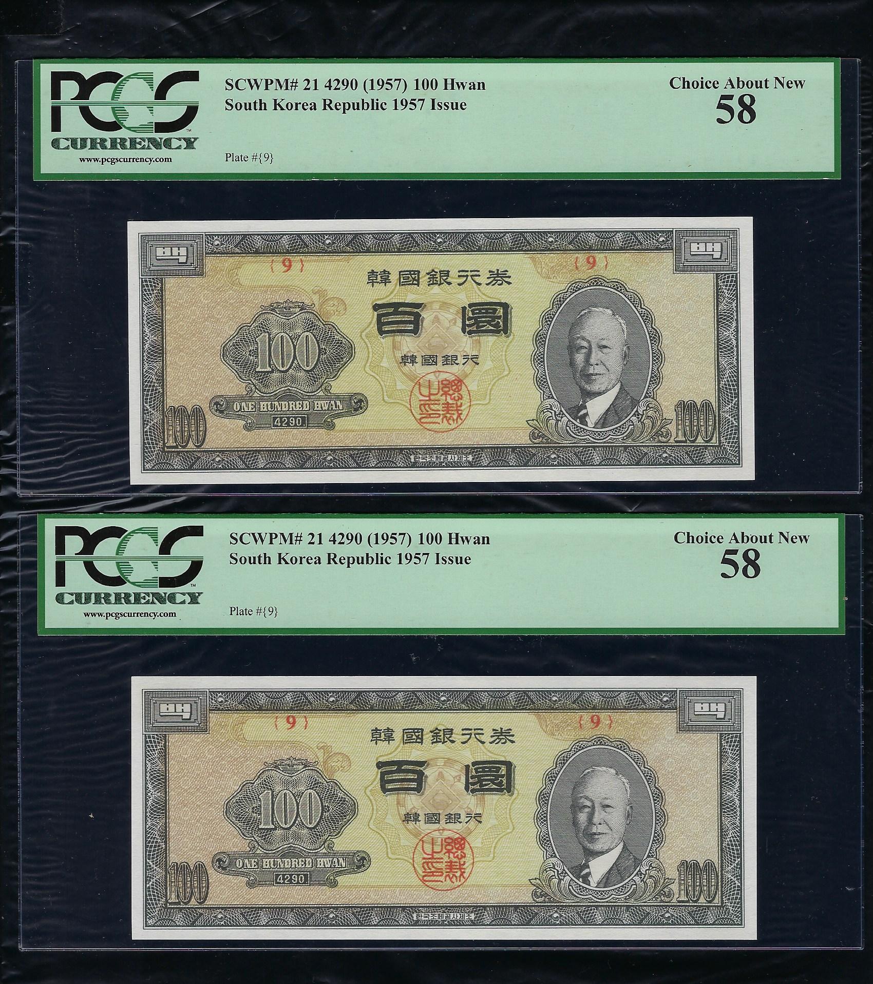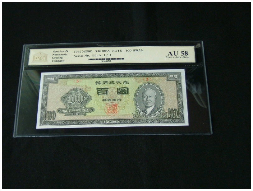 한국은행 개 100 환권 우이박 PCGS 58