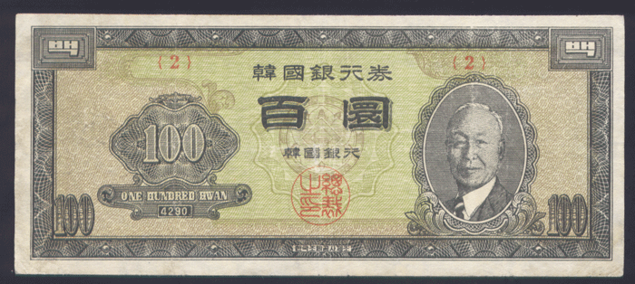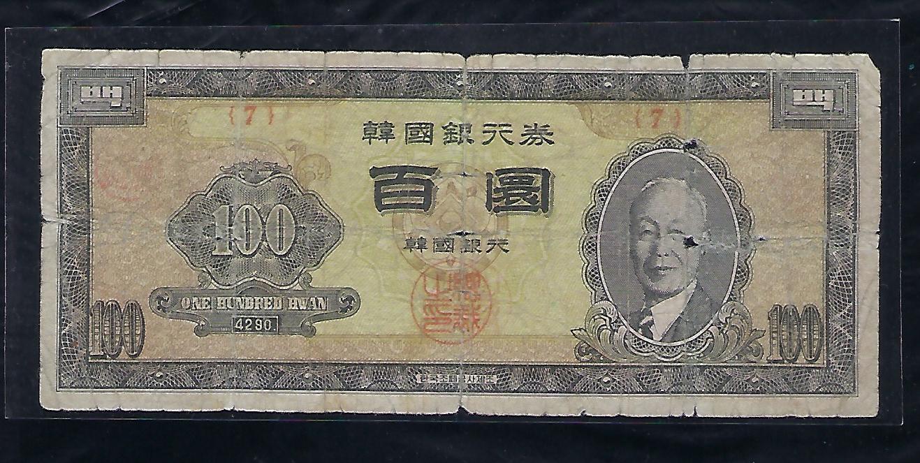 한국은행 개 100환권 우이박