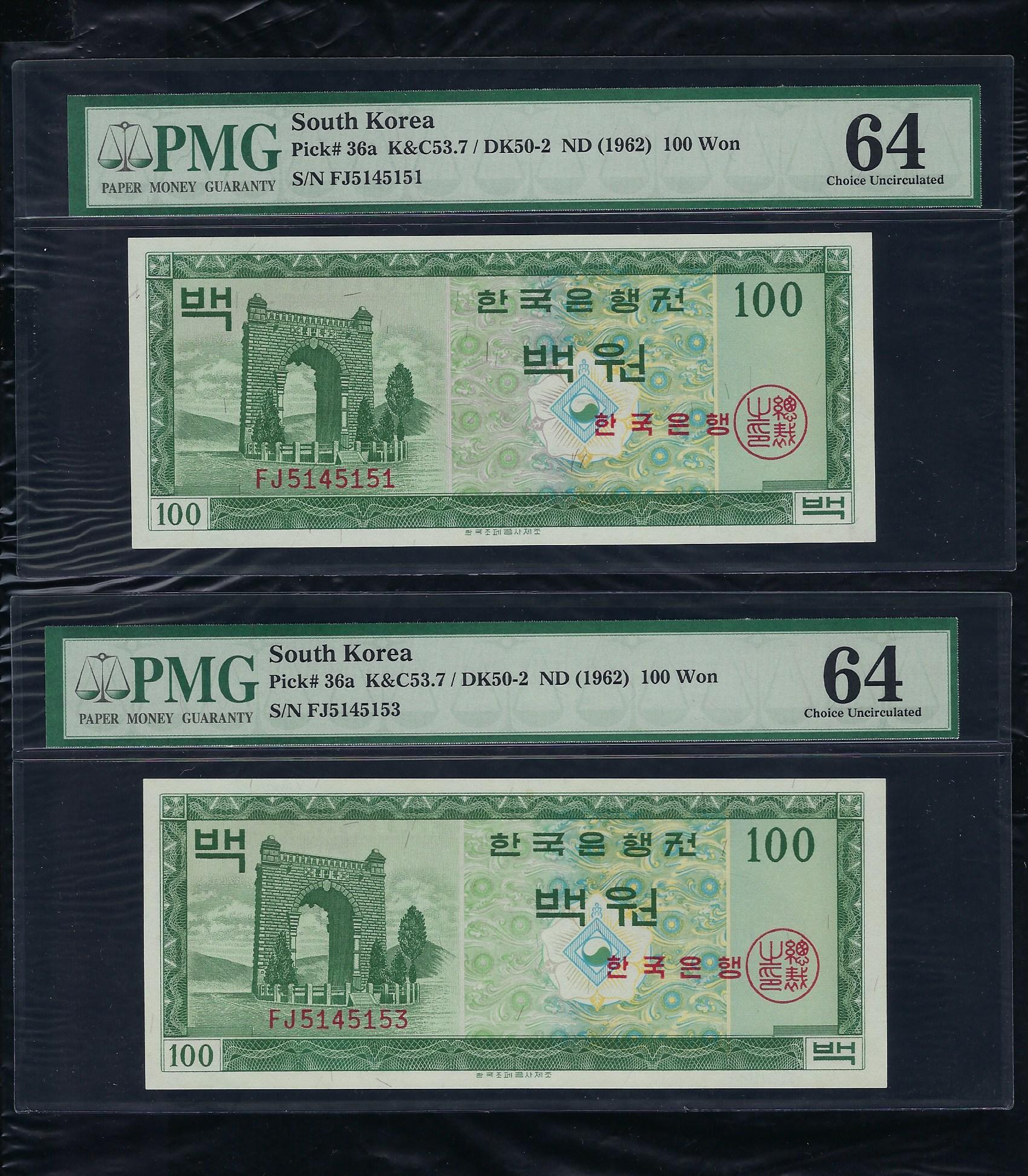 한국은행 나 100 원권 경회루 1964년 PMG 64