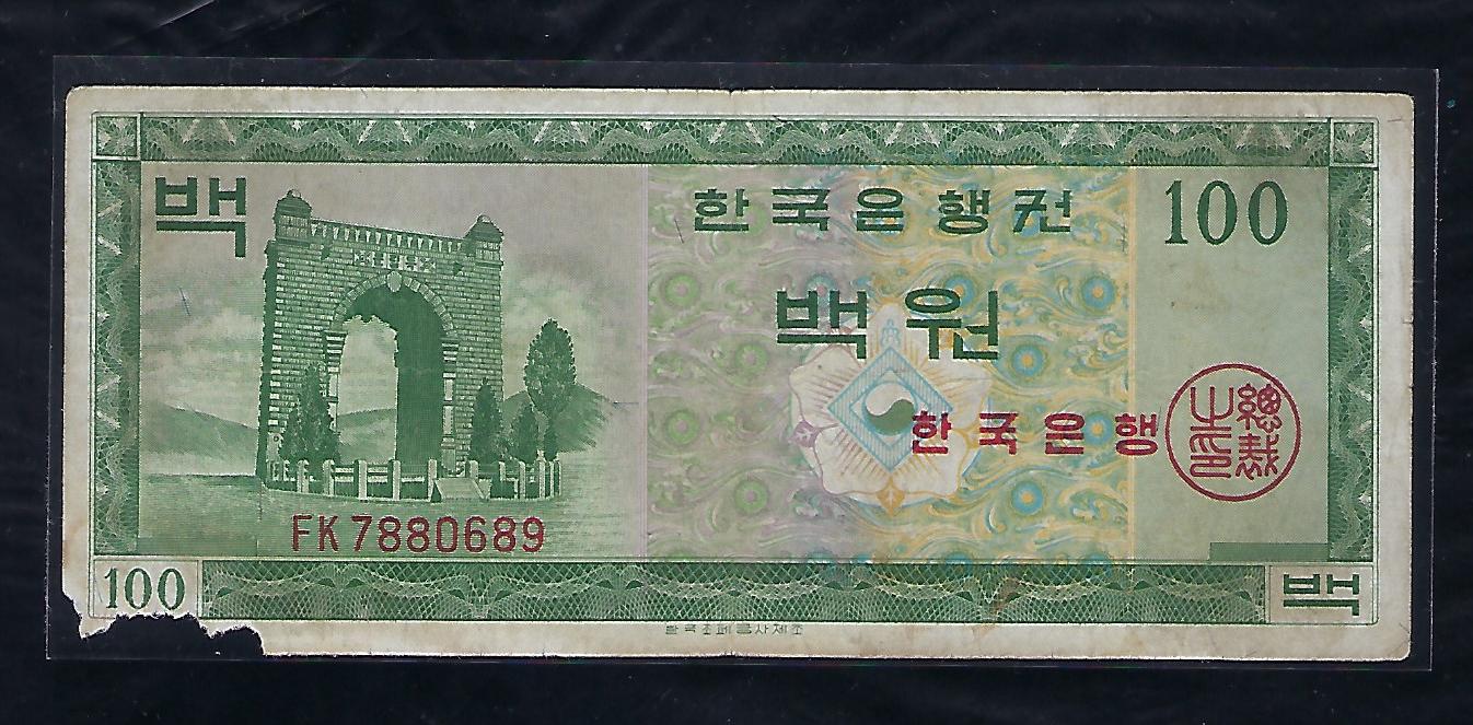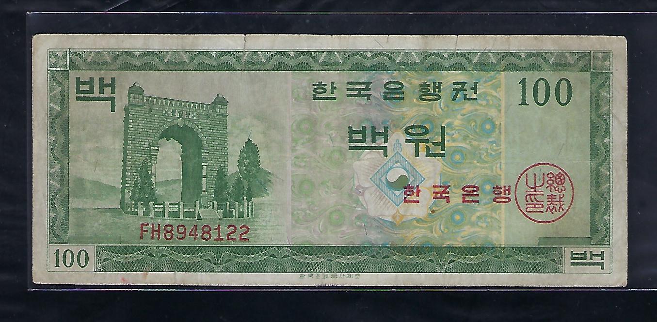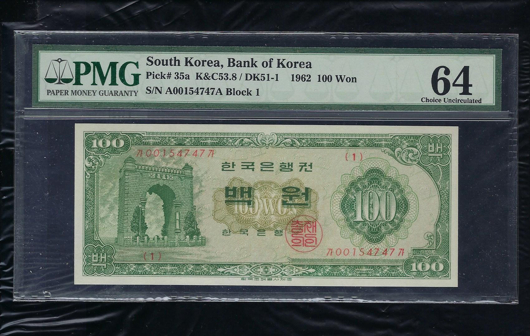 한국은행 나 100 원권 경회루 1962년 가가 00 초판 PMG 64