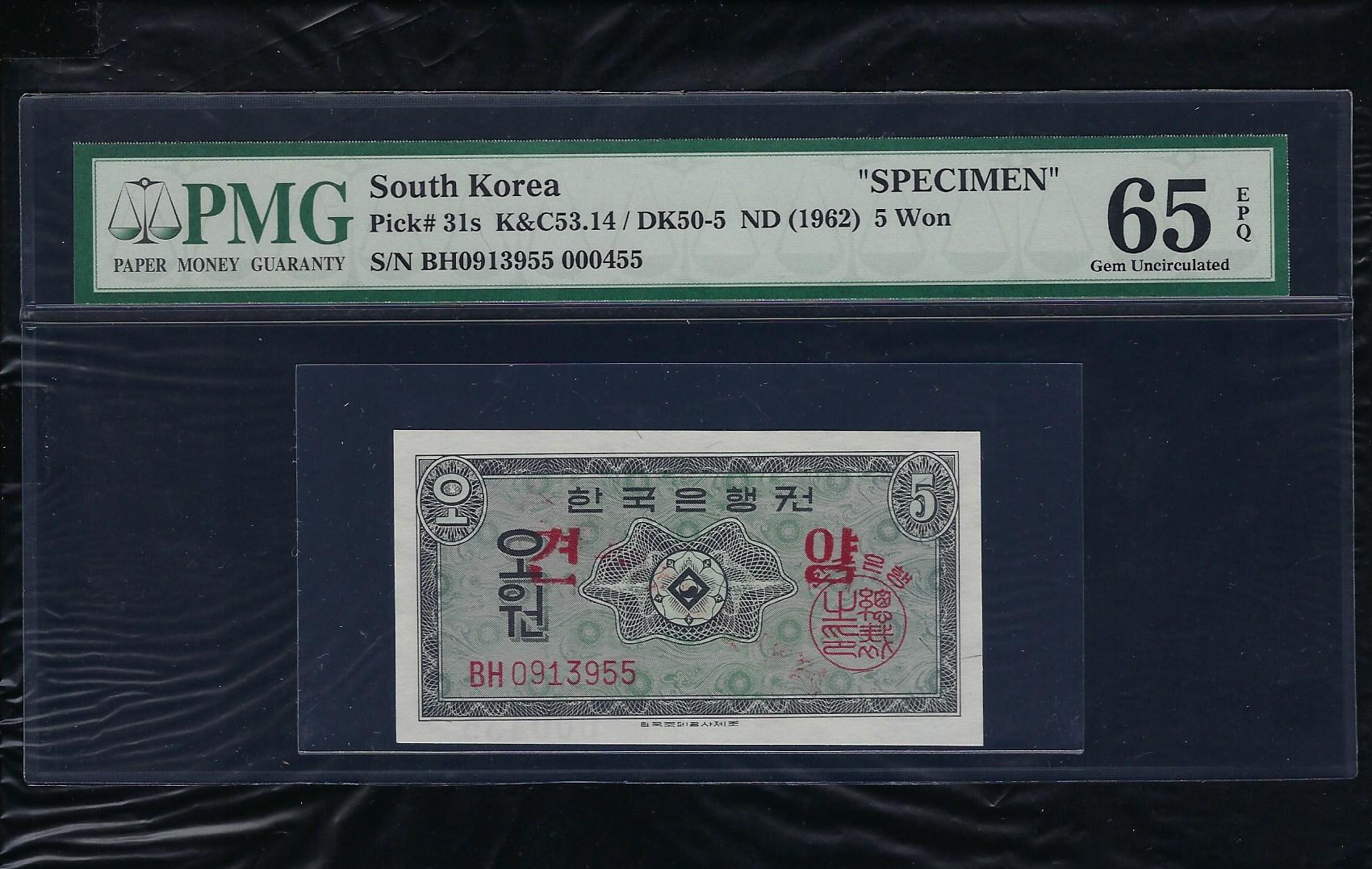 한국은행 5 원권 영제 견양권 PMG 65 EPQ